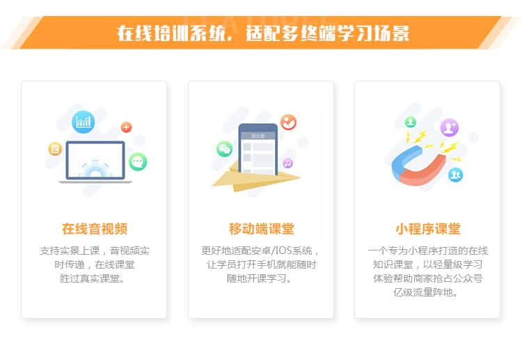 XK在线培训系统,针对学校教育、培训机构等行业推出多种解决方案,支持直播授课、知识付费、在线音视频、在线引流等特色功能,助力企业快速开启直播授课,让培训学习更有价值。