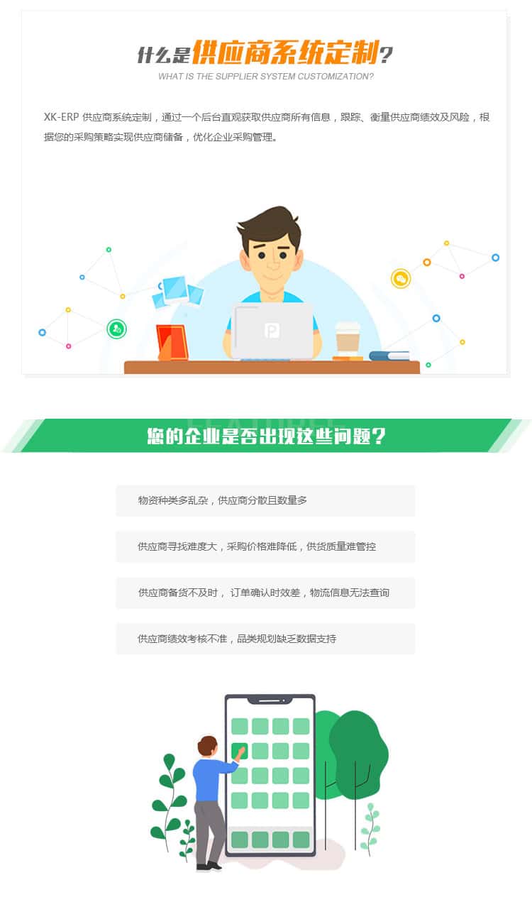 XK-ERP 供应商系统定制,通过一个后台直观获取供应商所有信息,跟踪、衡量供应商绩效及风险,根据您的采购策略实现供应商储备,优化企业采购管理。