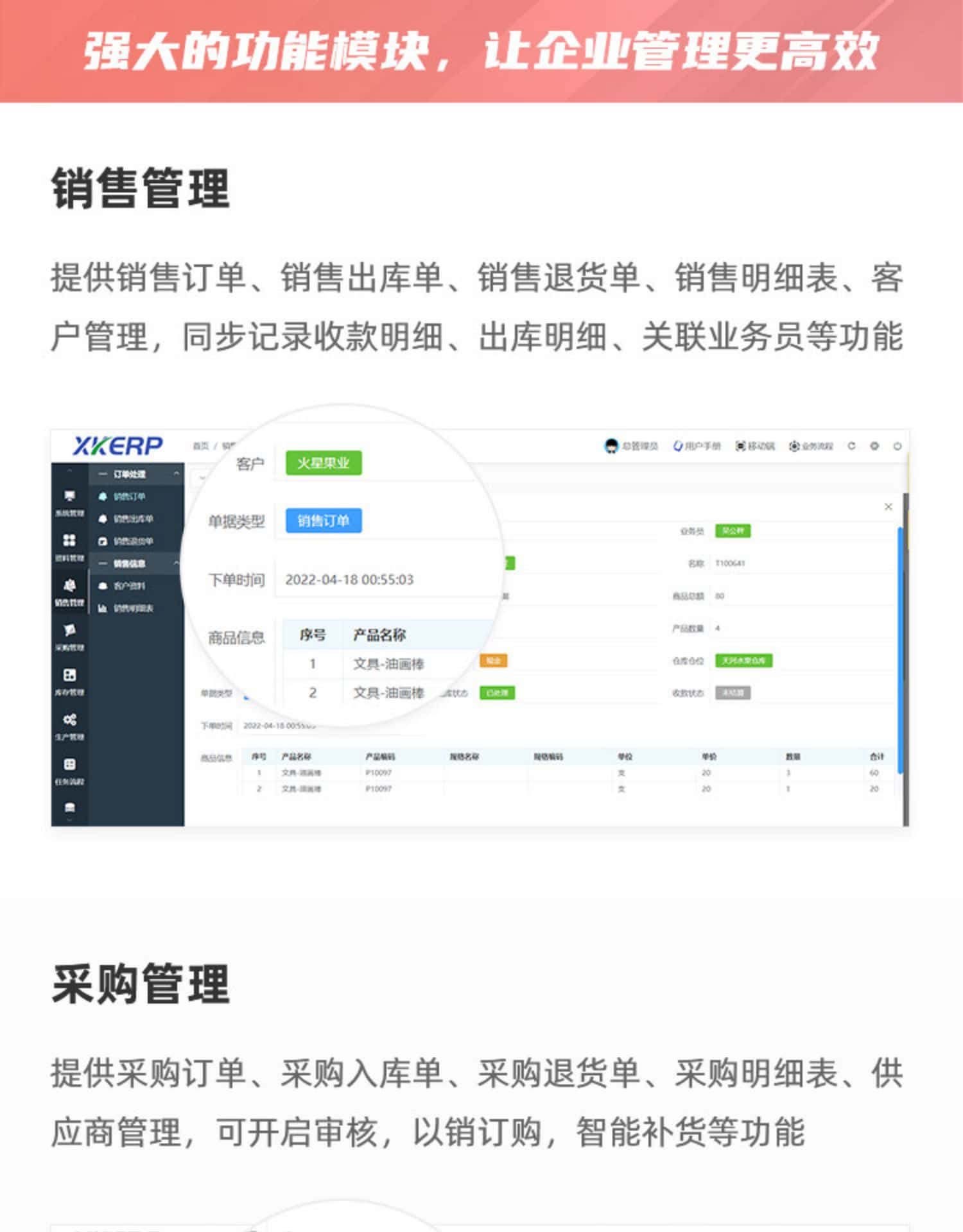 订单管理:能够有效管理订单的创建、修改、查询和删除等操作,包括订单状态跟踪、订单审核与确认等功能。